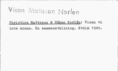 //// Visan Mattsson Norlen //// Christina Mattsson & Håkan Norlén: Visan vi inte minns. En sammanställning. Sthlm 1980. ////