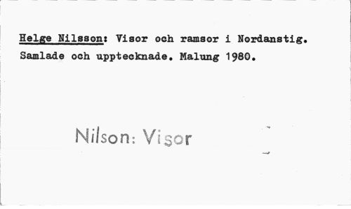 //// Helge Nilsson: Visor och ramsor i Nordanstig. Samlade och upptecknade. Malung 1980. //// Nilson: Visor ////