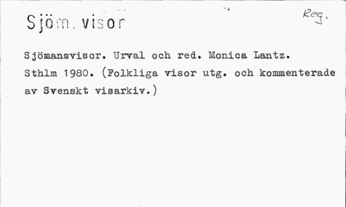 //// Sjorn. visor //// S j ömans vis or. Urval och. red. Monica Lantz. Sthlm 1980. (Folkliga visor utg. och kommenterade av Svenskt visarkiv.) ////
