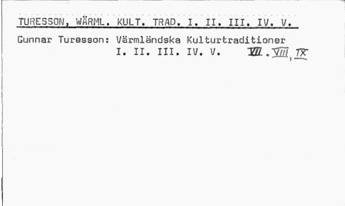 //// TURESSON, WÅRML. KULT. TRÄD. I. II, III,'IV. V. Gunnar Turesson: Värmländska Kulturtraditioner //// i. ii. iii. iv. v. ////