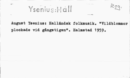 //// Yseniu$:HaH //// August Ysenius: Halländsk folkmusik. "Vildblommor plockade vid gångstigen". Halmstad 1959. ////