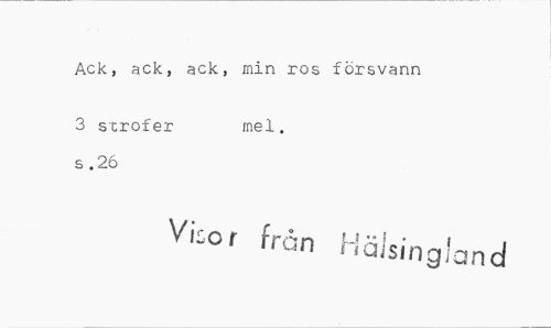 //// Ack, ack, ack, min ros försvann //// 3 strofer mel. //// s . 26 //// Vi:°' från Hälsingland ////