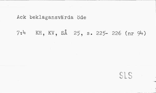 //// Ack beklagansvärda öde //// 7zh KH, KV, SÅ 25, s. 225- 226 (nr 9*0 //// SLS ////