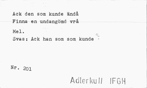 //// Ack den som kunde ändå Finna en undangömd vrå //// Mel. //// Svas: Ack han som som kunde • Nr. 201 //// Adlerku!/ IFGH ////