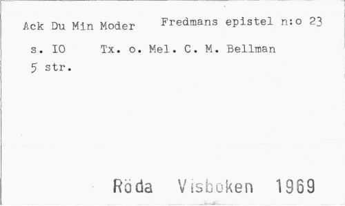 //// Ack Du Min Moder Fredmans epistel n:o 23 //// s. 10 Tx. o. Mel. C. M. Bellman 5 str. //// Röda Visboken 1989 ////