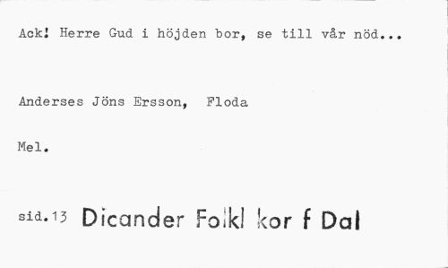 //// AckJ Herre Gud i höjden "bor, se till vår nöd... //// Anderses Jöns Ersson, Ploda Mel. //// sid. 13 Dicander Folk! kor f Dal ////