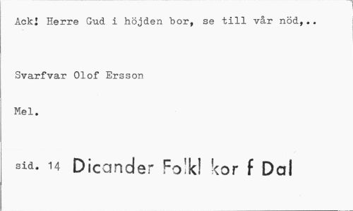 //// AckJ Herre Gud i höjden "bor, se till vår nöd... //// Svarfvar Olof Ersson Mel. //// sid. 14 Dicander Folk! kor f Dal ////