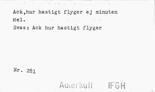 //// Ack,hur hastigt flyger ej minuten Mel. //// Svas: Ack hur hastigt flyger Nr. 281 //// Acherkull IFGH ////