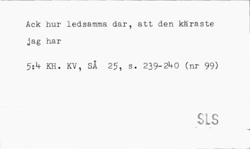 //// Ack hur ledsamma dar, att den käraste jag har //// KH. KV, SÅ 25, s. 239-2^0 (nr 99) //// SLS ////