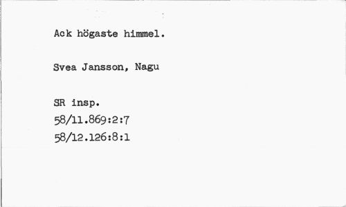 //// Ack högaste himmel. Svea Jansson, Nagu //// SR insp. 58/11.869:2:7 58/12.126:8:1 ////