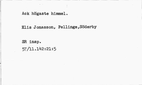 //// Ack högaste himmel. //// Elis Jonasson, Pellinge,Söderby //// SR insp. 57/11.142:21:5 ////