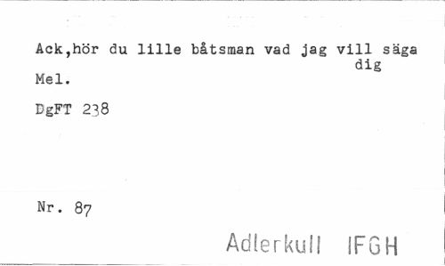 //// Ack,hör du lille båtsman vad jag vill säga //// dig //// Mel. //// DgFT 238 Nr. 87 //// Adlerku!! SFGH ////