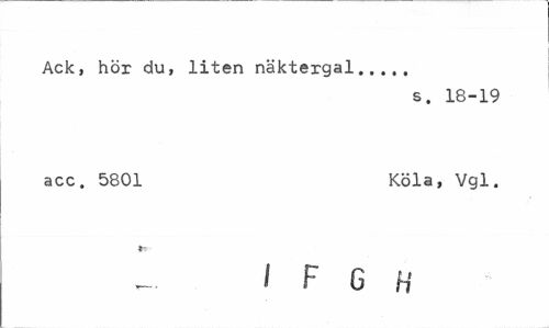 //// Ack, hör du, liten näktergal... //// s. 18-19 //// acc. 5801 Köla, Vgl. //// i //// I F 6 H ////