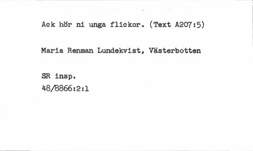 //// Ack hör ni unga flickor. (Text A207:5) //// Maria Renman Lundekvist, Västerbotten //// SR insp. 48/8866:2:1 ////