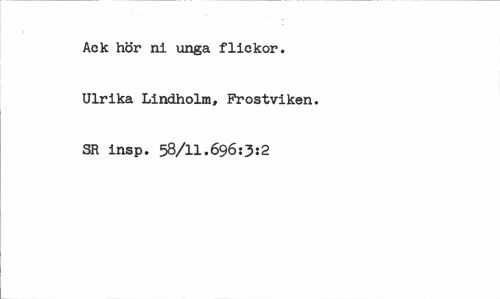 //// Ack hör ni unga flickor. Ulrika Lindholm, Prostviken. SR insp. 58/11.696:3:2 ////