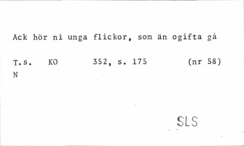 //// Ack hör ni unga flickor, som än ogifta gå //// T.s. KO 352, s. 175 (nr 58) //// N //// SLS ////