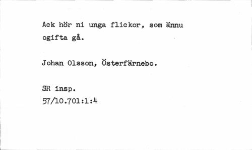 //// Ack hör ni unga flickor, som ännu ogifta gå. //// Johan Olsson, Österfärnebo. //// SR insp. 57/10.701:1:4 ////