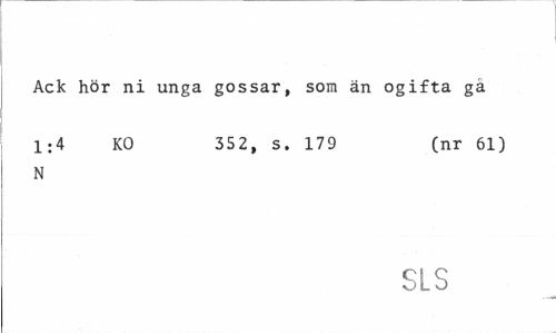 //// Ack hör ni unga gossar, som än ogifta ga //// 1:4 KO 352, s. 179 (nr 61) //// N //// SLS ////