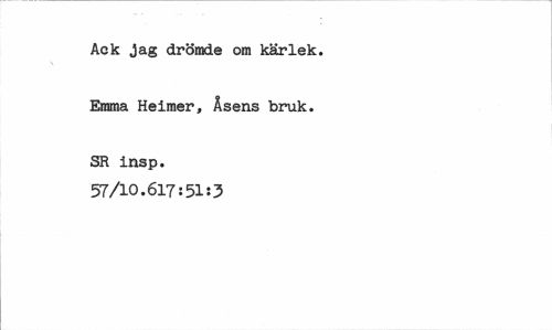 //// Ack jag drömde om kärlek. Emma Helmer, Åsens bruk. SR insp. //// 57/10.617:510 ////
