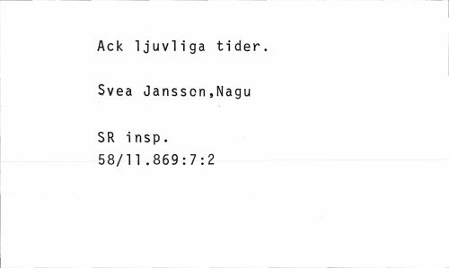 //// Ack ljuvliga tider. //// Svea Jansson,Nagu //// SR insp. 58/11.869:7:2 ////