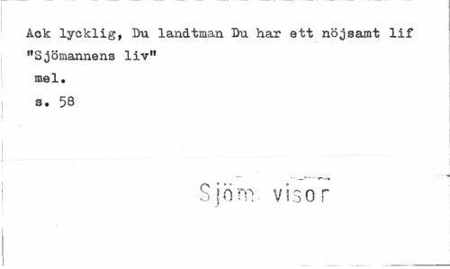 //// Ack lycklig, Du landtman Du har ett nöjsamt lif "Sjömannens liv" mel. s. 58 //// Sjörn visor ////