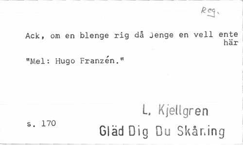 //// Ack, om en blenge rig då Jenge en vell ente //// här //// "Mel: Hugo Franzén." //// L Kjellgren //// 1 "7(3 //// Gläd Dig Du Skåning ////