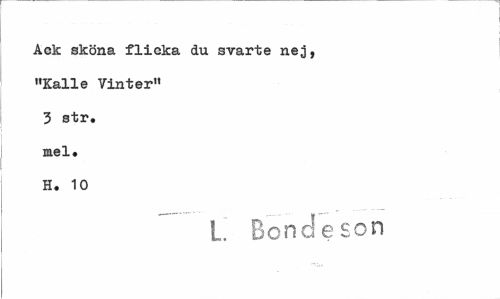 //// Ack sköna flicka du svarte nej, »Kalle Vinter" 3 str. mel. H. 10 //// L. Bondeson ////