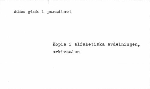 //// Adam gick i paradiset //// Kopia i alfabetiska avdelningen, arkivsalen ////