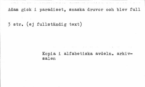 //// Adam gick i paradiset, snaska druvor och blev full 3 str. (ej fullständig text) //// Kopia i alfabetiska avdeln. arkivsalen ////