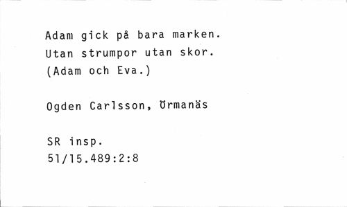 //// Adam gick på bara marken. Utan strumpor utan skor. (Adam och Eva.) //// Ogden Carlsson, Urmanäs //// SR insp. 51/15.489:2:8 ////