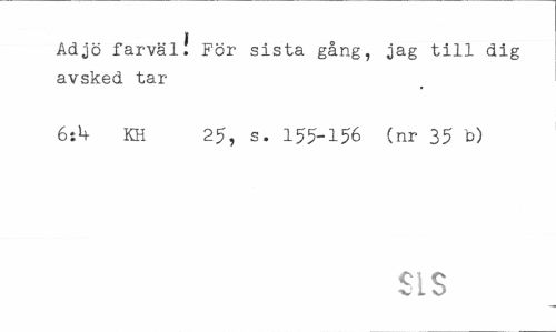 //// I //// Adjö farväl. För sista gång, jag till dig avsked tar //// 6:*+ KH 25, s. 155-156 (nr 35 b) //// SIS ////