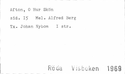 //// Afton, 0 Hur Skon //// sid. 15 Mel. Alfred Berg //// Tx. Johan Nybom I str. //// Röda Visboken 1969 ////
