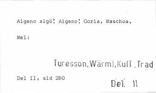 //// Aigeno aigö'. Aigeno'. Goria, Maschoa, Mel: //// Turesson, Wärml.KulT Jr ad //// Del II, sid 280 . . //// Del 11 ////