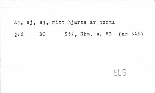 //// Aj, aj , aj , mitt hjärta är borta //// 2:6 BO 532 , Ilbm. s. 83 (nr 548) //// SLS ////