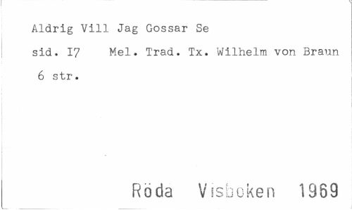 //// Aldrig Vill Jag Gossar Se //// sid. 17 Mel. Trad. Tx. Wilhelm von Brann 6 str. //// Röda Visboken 1959 ////