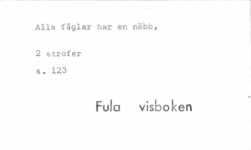 //// Alla fåglar har en näbb, //// 2 strofer s. 123 //// Fula vis oken ////