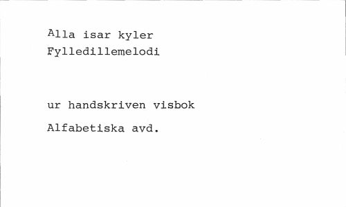 //// Alla isar kyler Fylledillemelodi //// ur handskriven visbok Alfabetiska avd. ////