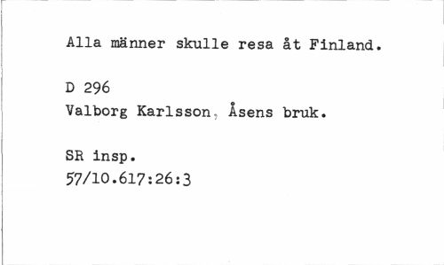 //// Alla männer skulle resa åt Finland. D 296 //// Valborg Karlsson, Åsens bruk. //// SR insp. 57/10.617:26:3 ////