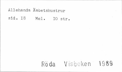 //// Allehanda Ämbetshustrur sid. 18 Mel. 10 str. //// Röda Visboken 1969 ////
