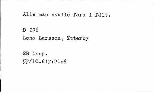//// Alle man skulle fara 1 fält. D 296 //// Lena Larsson, Ytterby //// SR insp. 57/10.617:21:6 ////