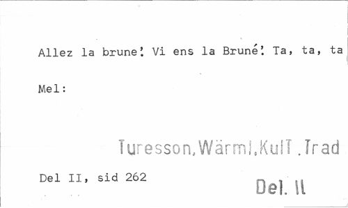 //// Allez la brune'. Vi ens la Bruné'. Ta, ta, ta Mel: //// Turesson,Wärmj.KuiT .Irad //// Del II, sid 262 _ , iå //// Del, H ////
