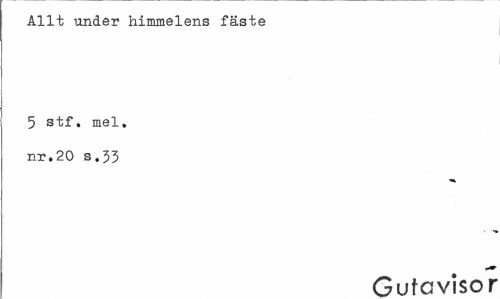 //// Allt under himmelens fäste //// 5 stf. mel, nr.20 s.55 //// Gufavisor ////