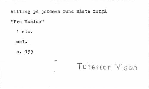 //// Allting på jordens rund måste förgå "Fru Musica" 1 str. mel. s. 139 //// Tur essen Visan ////