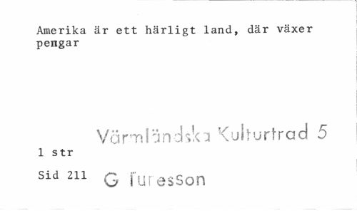 //// Amerika är ett härligt land, där växer pengar //// Värmländska Kull-urträd 5 //// 1 str //// sid 211 q j"ui esson ////