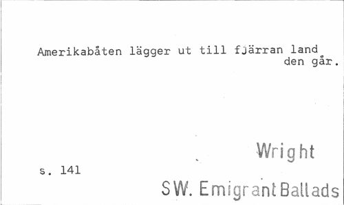 //// Amerikabåten lägger ut till fjärran lando //// den gar. //// •Wrigh t //// s. 141 //// SW. Emigrant Ballads ////