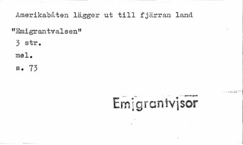 //// Amerikabåten lägger ut till fjärran land //// "Smigrantvalsen" 3 str. mel. //// s. 73 //// Emjgrantvisor ////
