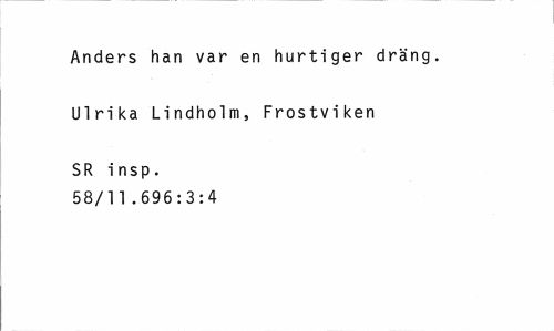 //// Anders han var en hurtiger dräng. //// Ulrika Lindholm, Frostviken //// SR insp. 58/1 1 .696:3:4 ////