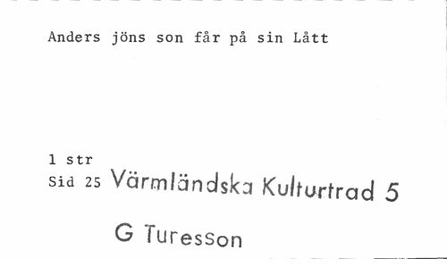 //// Anders jöns son får på sin Lått 1 str //// sid 25 Värmländsks Kulfurfrad 5 G Turesson ////