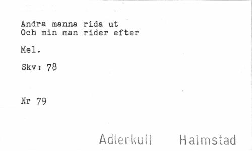 //// Andra manna rida ut //// Och min man rider efter //// Mel. //// Skv: 73 //// Nr 79 //// Adierkui i Halmstad ////