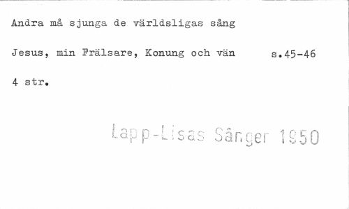 //// Andra må sjunga de världsligas sång //// Jesus, min Frälsare, Konung och vän s.45-46 //// 4 str. //// Lapp-Lisas Lån ,er H 50 ////